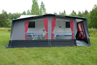 Materiaalit on valittu tarkkaan pitkän kokemuksen avulla. Teltta on valmistettu 300g:n kuituvärjätystä acryylista. Se tarkoittaa, että kangas jo kuitutasolla on samanvärinen, kuin valmis kangas.