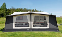 Materiaalit on valittu tarkkaan pitkän kokemuksen avulla. Teltta on valmistettu 300g:n kuituvärjätystä acryylista. Se tarkoittaa, että kangas jo kuitutasolla on samanvärinen, kuin valmis kangas.
