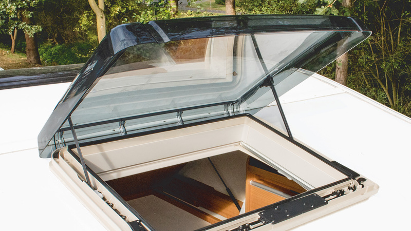 Kattoikkuna vakaalla muovikehyksellä. Voidaan asentaa pitkittäin tai poikittain. Integroitu verhosysteemi. Hyvät eristysominaisuudet, kaksoislasi sävytettä akryylia. Tiheä hyönteisverkko